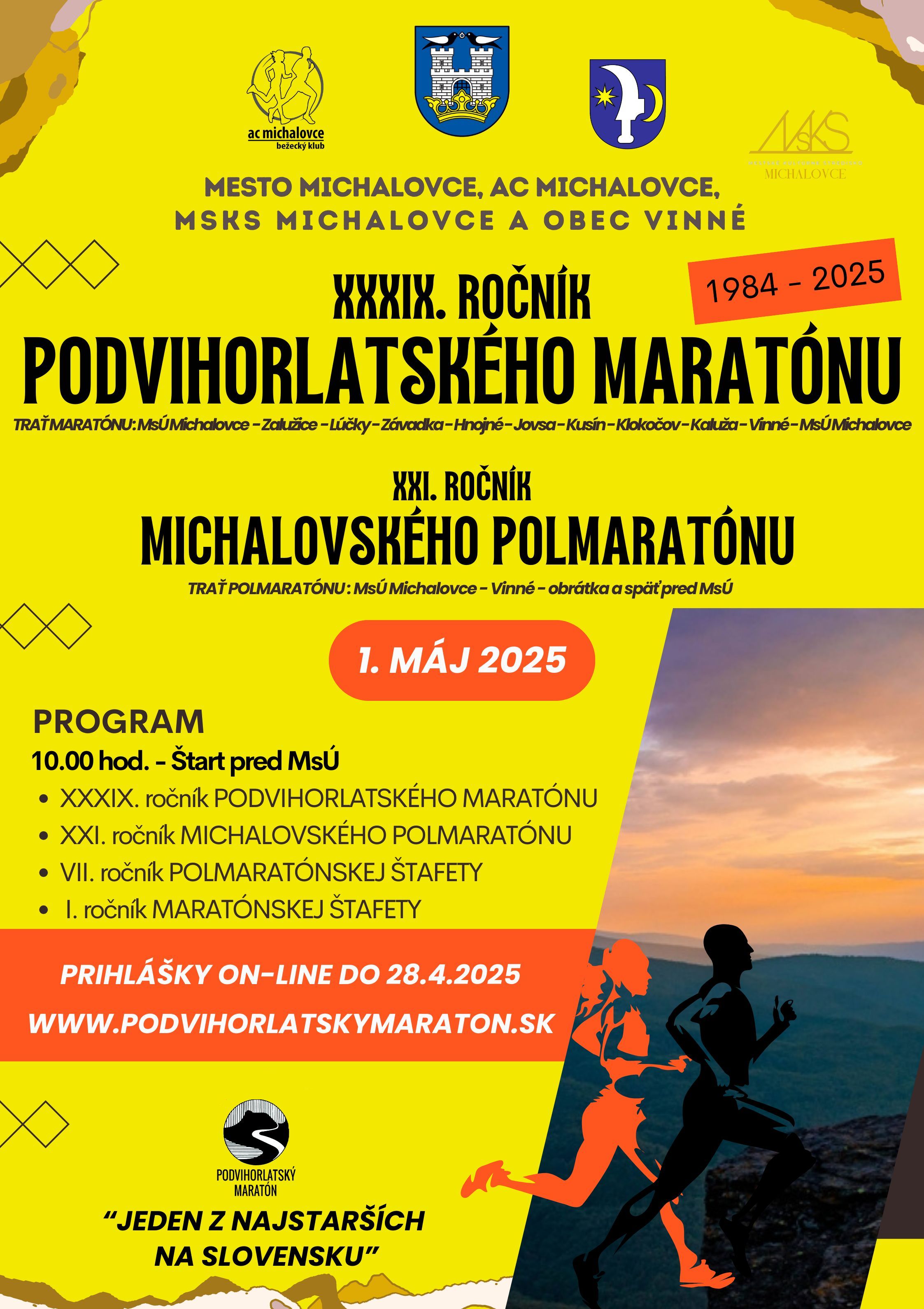 Vďaka dlhoročnej spolupráci s MsKS Michalovce predstavujeme oficiálny plagát k 39.ročníku Podvihorlatského maratónu, 21.ročníku MVM (Michalovce - Vinné - Michalovce) pomaratónu a maratónskej a polmaratónskej štafety. Návrh Mgr. art. Miroslav Kisty), ďakujeme :)